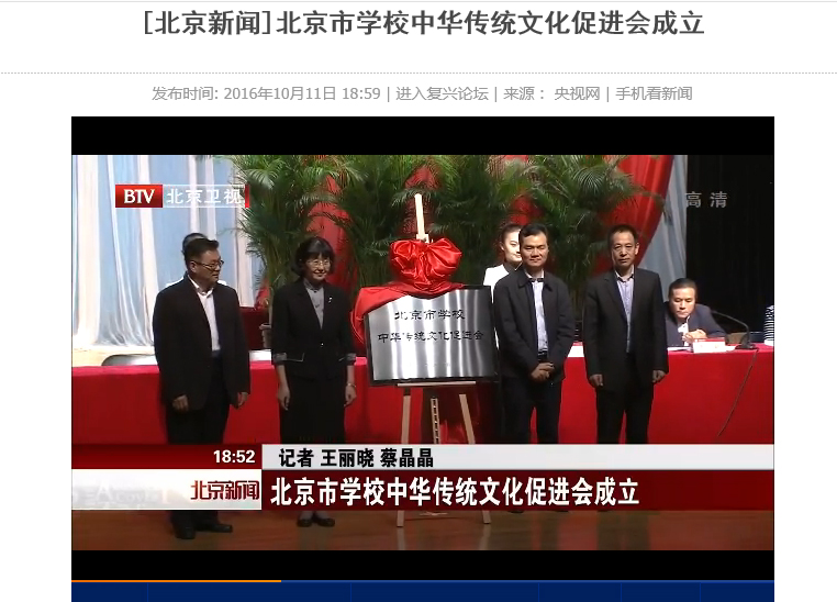 当前位置:> 首页- 新闻公告- 媒体国戏 栏目导航 新闻公告 媒体国戏 北京市学校中华传统文化促进会成立(BTV北京新闻2016-10-11) 时间:2016-10-12 来源:宣传部文:0图:0 视频链接:http://politics.cntv.cn/2016/10/11/VIDEA6ovSxFyswlbgvlZjYzc161011.shtml 上一篇 下一篇 返回
