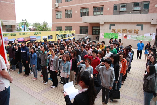 开幕式伊始,在学生会主席李怡洁的带领下,在场的同学们面向团旗,在激昂的中国共产主义青年团团歌声中重温入团誓词,用高亢嘹亮的誓词表达了对五四爱国运动的纪念和新时期青年学生的爱国热情。