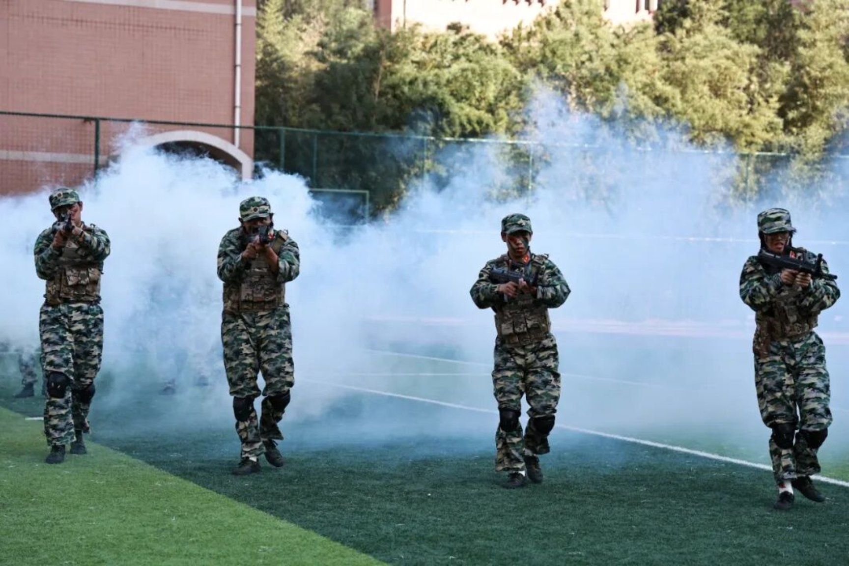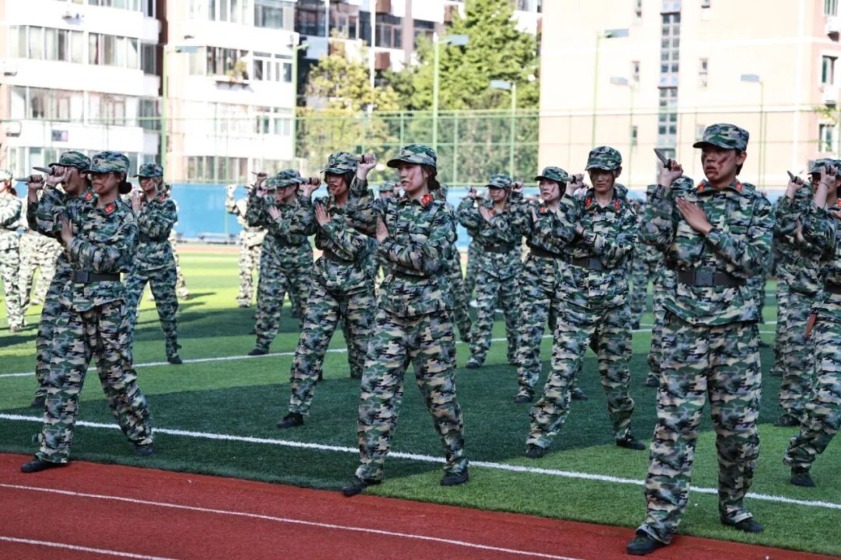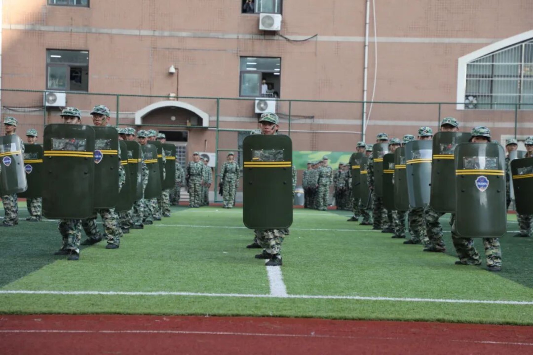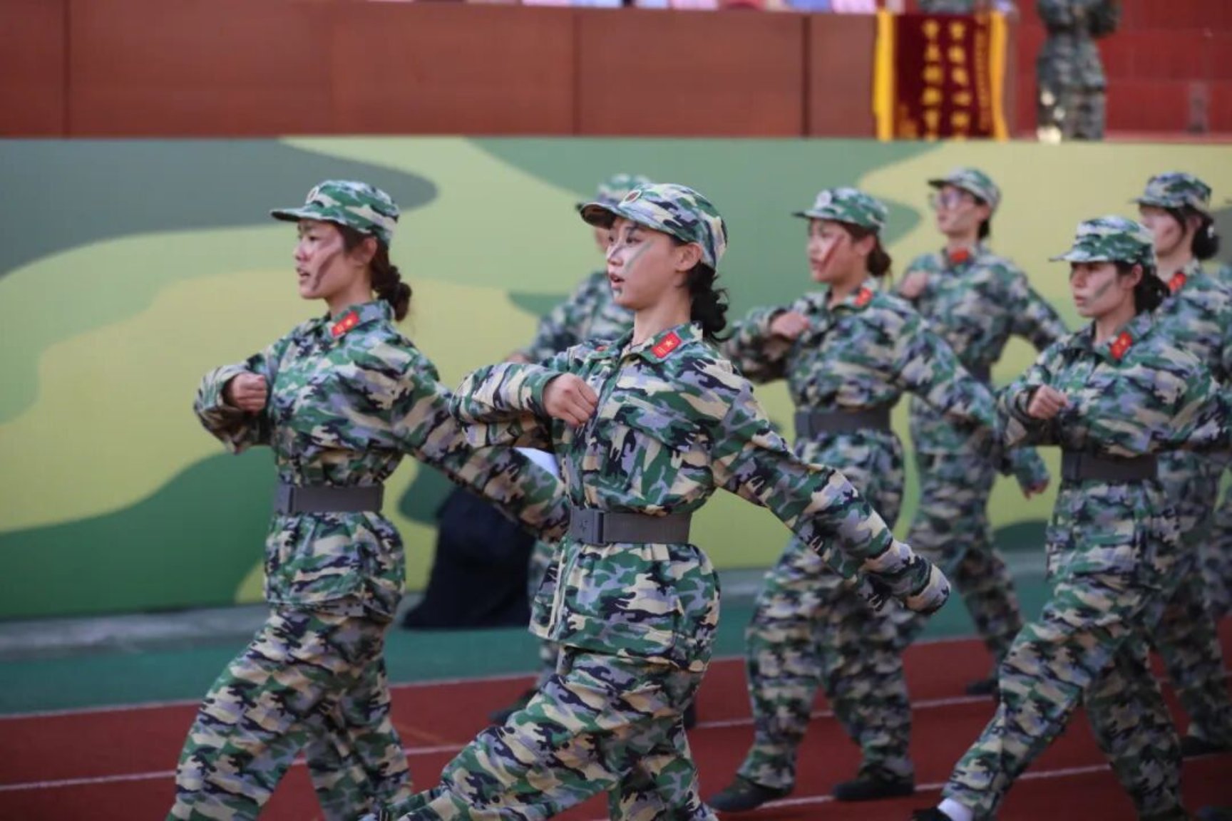 仪式上宣读了2025年秋季学期学生军训嘉奖令。同学们以整齐的队列、昂扬的士气,依次进行了分列式、擒敌拳、警棍盾牌、刺杀操、匕首操、战术行动等科目展示,充分展现了军事训练成果和奋发向上的精神风貌。
