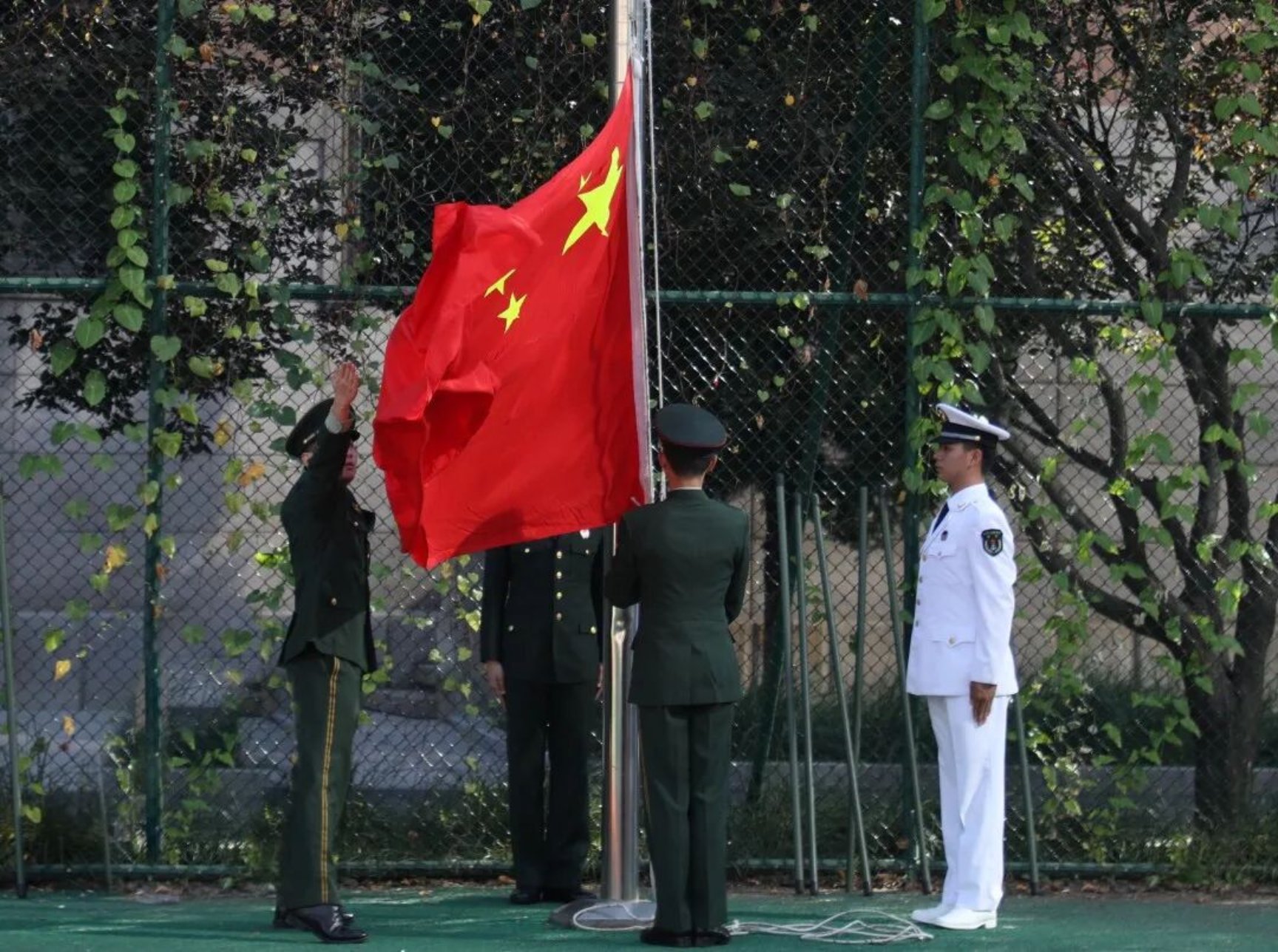 仪式在庄严的奏国歌和升国旗中拉开帷幕。