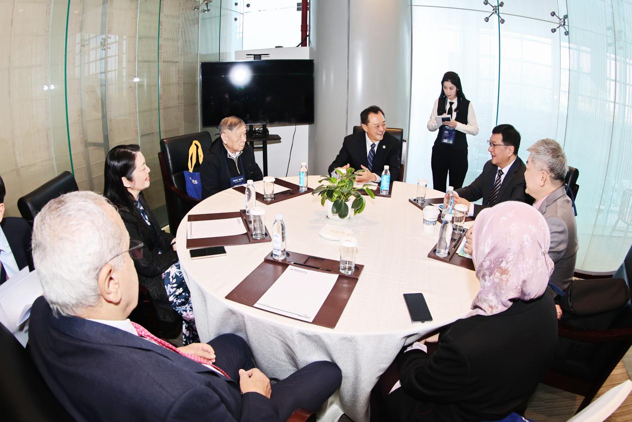 论坛开始前,北京语言大学党委书记倪海东与尹晓东院长、墨西哥驻华大使施雅德、新加坡教育部课程规划与发展司助理司长吴世伟等集体会谈。