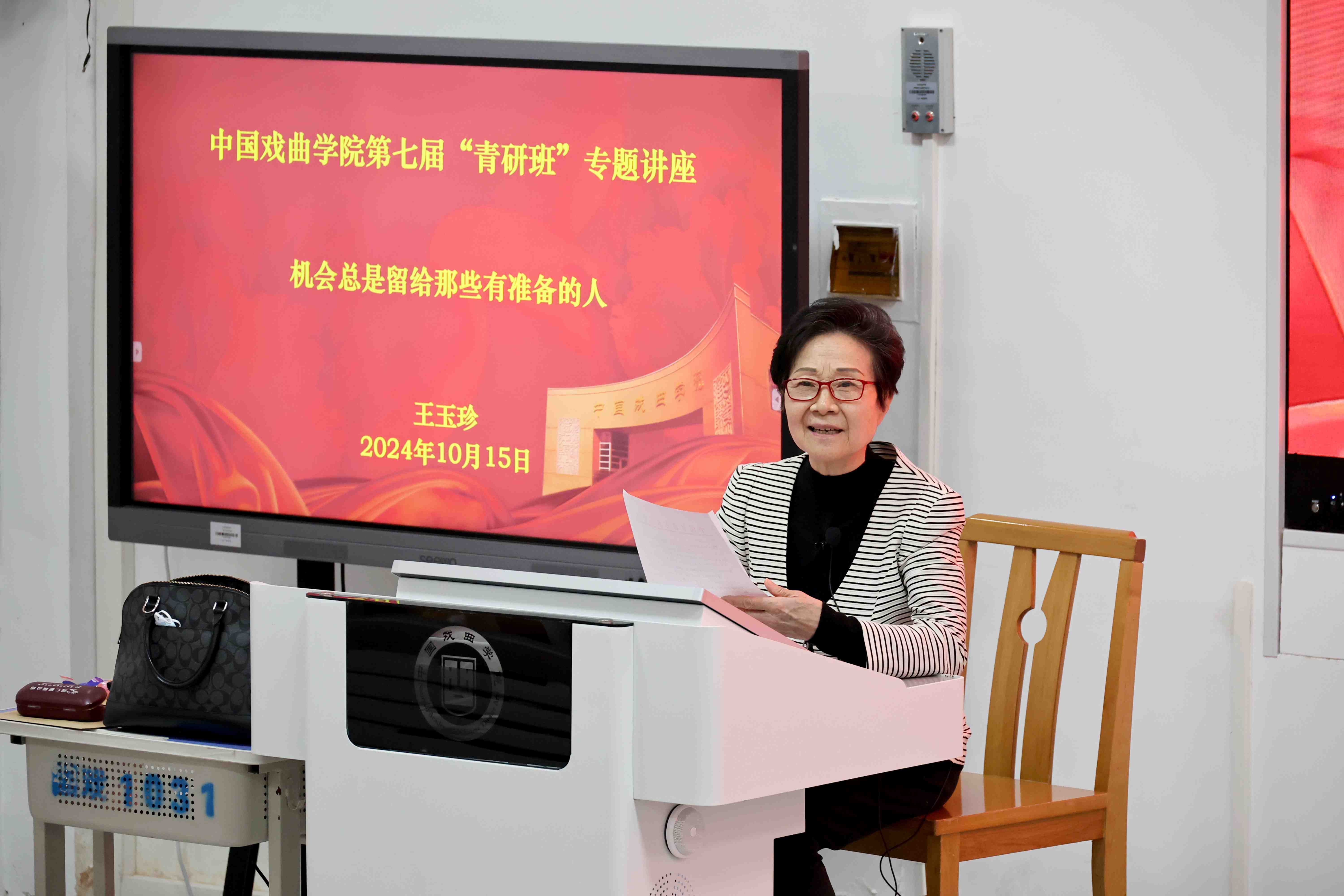 10月15日、22日,著名京剧表演艺术家王玉珍、叶金援应邀为第七届“青研班”作专题讲座。学校艺术总监、京昆系主任、“青研班”班主任于魁智,“青研班”执行班主任舒桐与第七届“青研班”学员、学校教师学生代表聆听了讲座。