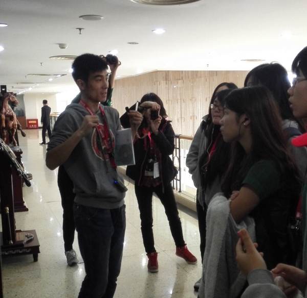 10月18日下午,周培源基金会工作人员以及台湾台北市第一高级女子中学社会资优班师生代表团共25人来我院交流访问。在学院国际交流合作部工作人员的陪同下,来访师生参观了大剧场,并参加了戏曲文化讲座和若干体验课程。师生们被戏曲文化的魅力所吸引,对精美的戏曲服饰、生动精彩的戏曲文化讲解,充满艺术美感的身段练习及脸谱绘画等赞叹不绝。