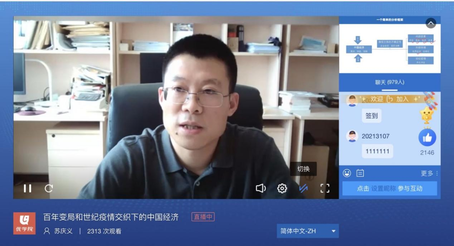 6月7日下午,第四场讲座邀请到中国社会科学院世界经济与政治研究所研究员、国际贸易研究室副主任苏庆义,苏庆义以《百年变局和世纪疫情交织下的中国经济》为专题,详细讲授了世界经济重心变迁、中国经济发展面临的内外部环境、中国经济现状及前景等重要问题。